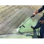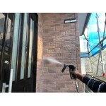 まず、汚れは150kgf/㎠の高圧洗浄で、藻や苔などの不純物を洗い流したあとで、下塗りシーラーを2度塗りすることにより、上塗り材が、風化したスレート材に吸い込むのを防ぎ、上塗り塗料の密着性を高める効果があります。