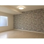エコカラットのアクセントクロスが映えるシンプルモダンリビング