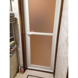 お客様のお風呂はドアに変えた場合でも、開けた時に浴室にスペースがありましたし、お客様の希望もあって折れ戸からドアへの交換となりました! 見た目もスッキリ!開け閉めも楽々です!