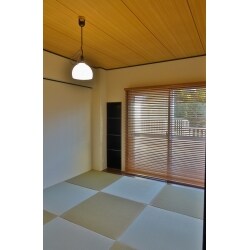お休みの日は、読書などして家の中で過すことが多いとお聞きしたしましたので、温かみのある居心地の良い和室、そして洗面所とトイレは、少し大胆な色使いでの仕上げを 提案させていただきました。