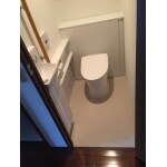 TOTOのワンデーリモデルのトイレで給排水工事を最小限におさえ、手洗い器を手前に設置いたしました。