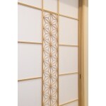 オープンになったキッチンはLDKの中心になりました。 リビングと和室の仕切りに採用したのは、伝統文様の麻が組み込まれた組子障子。