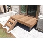 外壁と屋根の塗装仕上げ・外壁部分サイディング仕上げ・玄関交換・内窓設置のほかに、ご実家の掃き出し窓段差解消にウッドデッキ+ステップ設置をご提案致しました。