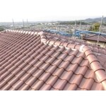 屋根の漆喰を塗り替えました。既存漆喰を撤去後、下塗り・上塗りをします。軒樋と縦樋は、打ち合わせの際に見本から選んでいただき、パナソニックの商品に取替えました。