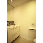 ホワイトとブラックのコントラストが美しい洗面化粧台
