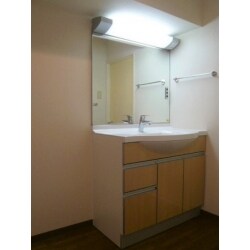 老朽化した洗面台を新しくするにあたり、小さな鏡を大きくしたい、白熱電球ではなく、明るい蛍光灯に変更したい。