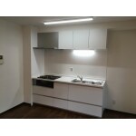 圧迫感のある収納兼間仕切りがあるため、キッチンが暗く手狭でした。