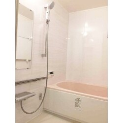 梁を隠したので、アクセントパネル面がすっきりしました! また、パネルを4方向とも光沢のある鏡面パネルにすることで、浴室が明るくなりました! 設備機能も充実しています!