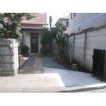 左側の石門柱を生かしながら、植栽と右側門柱を撤去して駐車も楽になりました。