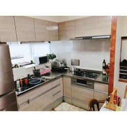 外部からの光が入りにくい部屋の為、窓を最大限に利用して採光を確保し部屋全体を明るくしたい。 キッチン廻りの壁を掃除しやすいものに変えたい。