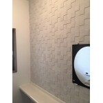 便器はタンクレス式のリフォーム用を採用し、床・天井と壁も一新しました。壁は吸湿と消臭効果のあるエコカラットを採用、デザイン性も上がってお洒落なトイレになりました。