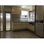 キッチンとダイニングスペースのリフォームです。 L型キッチンは動きやすく、作業スペースも大きく取れるのでオススメです。 内装もさることながら、サッシや勝手口などの開口部もリフォームし、一部のサッシ→壁となりましたので、吊戸棚の収納を増やすことが出来ました。