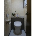 落ち着いたキャビネットカラーで、すっきりおしゃれなトイレ空間になりました。
