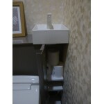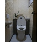 来客が多いとの事でしたので、トイレで手洗いまで済ませられ、収納も備えたキャビネット付トイレをご提案しました。トイレットペーパーや掃除用具などもキャビネットに納まり、スッキリとした空間になりました。