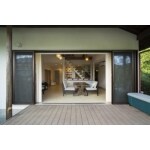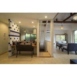 大空間のLDKには庭につながるウッドデッキも造りました。 両サイドにオープンできる大開口ウィンドウが特徴的です。 床材は無垢フローリングを使用 リビングの壁には珪藻土を塗りました。 自然素材をふんだんに使った気持ちのよい空間に仕上がりました。