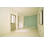 各部屋にさわやかな色合いのアクセントクロスを施しました。子供部屋にはたくさんのおもちゃや本を収納できる可動棚を設置しました