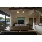 使用されている木材等が高価な材質なので、梁を残し平屋ならではの天井高を確保しました。 広々としたキッチンとリビングからは家族の様子も見れ会話も楽しめるように。 オープンデッキにつながる大口サッシからは明るい日差しと子供達の声があふれてくる、過ごし易い空間をご提案いたします。