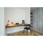流木模様のクロスを一面貼りつけました。 いわゆる「アクセントクロス」というものです。 部屋を飾らなくてもしっかりとオシャレにまとまるリノベのテクニックです。