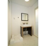 造作洗面台ではないですが、気軽に設置できる造作洗面台のような雰囲気の洗面カウンターです。 鏡もお気に入りの鏡を選べばオリジナルな空間とすることが出来ます。