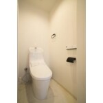 間接照明の柔らかな光がスタイリッシュで落ち着いたトイレ空間