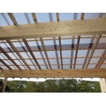 屋根はプラスチック樹脂製から軽く、耐衝撃強度のあるポリカーボネート樹脂製の波板に張替えをしました。柱はしっかりと金具で補強してありますので、太い柱の固定も安心です。