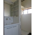 セミオーダー 姿見タイプのキャビネットで使いやすい洗面所に