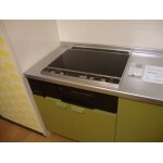 機能性を考慮しコンロはIHの3口タイプ、キッチン前にはアイボリーのパネルをはってお手入れしやすい空間になっています。
