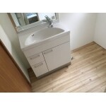 間口を広く取り、鏡も取り付け身支度にかかる負担を軽減しました。 天井・壁クロス、床はクッションフロアへ張替へ