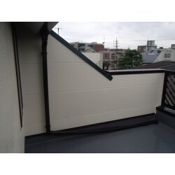 居室の屋上に、屋根とベランダがあり漏水してしまったので修繕をしました。 色々な業者様が入っていたようですが、なかなか直りきらなかったそうです。 弊社で突き止めた原因は、屋根の板金や端部に劣化があり壁の中まで雨水が入ってしまったことでした。 ですので、今回は屋根の板金やり直し修繕と端部のシール処理、壁サイディングの張替となりました。 漏水修繕は、原因と思われる所を一つずつ工事しながら潰していくしかないので、工事期間が長期にわたりやすく、難しい工事です。 弊社は経験豊富な職人が多数揃っておりますので、他社様がやり切れなかった工事の時でもご相談頂ければ最大限ご協力させて頂きます。