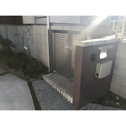 周りのエクステリアとも馴染む色・デザインの門扉をご提案致しました。