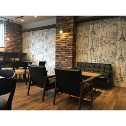 落ち着いたカラーのブリックタイルと木目調の床材を組み合わせることによって、落ち着きの中にも品があるアカデミックな空間に仕上がりました。