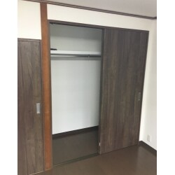 木目が素敵な収納扉と床の色を統一し、モダンな雰囲気の落ち着いた洋室になりました。 収納も仕切りを取り、使い勝手がよくなりました。