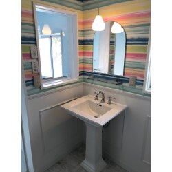 ・ペデスタルシンクの設置をして、明るくスッキリした場所にしたい。 ・ペデスタルシンクの希望はKOHLER(コーラー社)だが、他にオススメのメーカーがあれば提案してほしい。 ・ペデスタルシンクにすると洗面台の照明がなくなるので、施主支給でペンダント照明用意するので、それを取付られる状態にしてほしい。 ・壁の一部の腰壁をモールディングかモザイクタイル貼りにしたい。壁上部は1000クラスの柄が選べるクロス貼りでおしゃれにしたい。 ・床はフロアタイルかクッションフロア貼り。