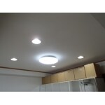 リビングダイニングの照明は、既存ダウンライト(60W相当)から新規LEDダウンライト(100W相当)に交換しました。食事の時に手元まで明るく、またLEDなので省エネ効果も期待できます。