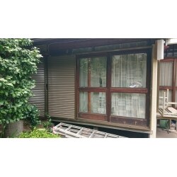 木製の雨戸の鍵付けが悪く開け閉めが大変なので、腐らない素材に取り替えたいとのご要望を受けました。