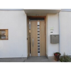 冬寒い玄関ドアは、断熱玄関ドアに変更しました。 木目調の玄関ドアにすることで、玄関廻りが明るく変わりました。