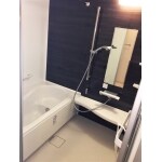 ブラックとホワイトのコントラストが際立つスタイリッシュな浴室