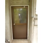 最近流行りの換気のできる勝手口ではなく、框のついた昔ながらのタイプのアルミの勝手口に取替交換いたしました。 ドアストッパーも付けて、ドアを開けたままの状態にすることが可能となりました。