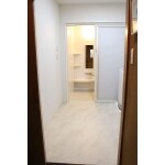 収納棚と幹太くんのある洗面室