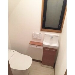収納つき手洗い器を設置しました! トイレまわりが濡れずにすみますね。 収納も完備されていて、トイレ空間がスッキリしました。