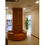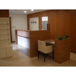 機能性とデザイン性を兼ね備えた大きな受付で、お客様をお出迎え