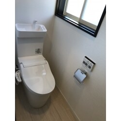 タンク一体型トイレへ交換しました。 凸凹も減ったので掃除もしやすくなりました。 床も新しく張り替えたことで広く感じられる空間になりました。