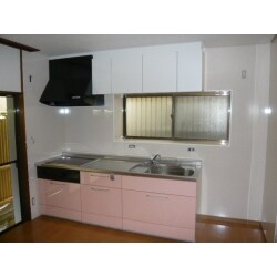 吊戸棚は白で壁と一体化させ、下台をピンクにすることで個性的なキッチンでありながら、シンプルにまとまりました。 以前の2口のテーブルコンロがIHになり、開き戸が引き出し式のスライド収納に、タイル壁がキッチンパネルいなったことで、機能性、清掃性もぐんと上がって、コストパフォーマンスも良いとお喜びいただけました。