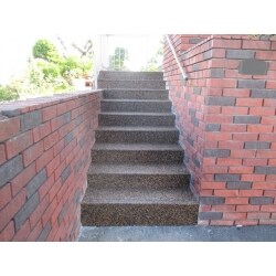 ゴムチップパネル貼りを提案し、耐水・透水性があり氷が出来づらく冬期の階段の上り下りには最適です。