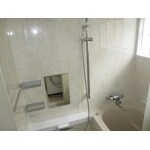 断熱効果の高いユニットバスにしました。お湯の冷めにくい魔法瓶浴槽ですので、いつまでも温かく入浴することができます。 壁は汚れが付きにくいパネルですのでお掃除も以前に比べて簡単です。ご高齢の為、立ち座りの際の転倒防止に手すりも設置しましたので安心です。