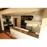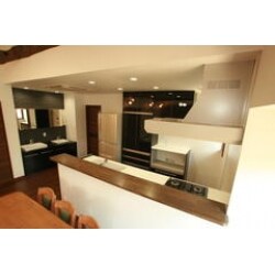 ・ホームパーティーができる開放的な大空間をモダンに デザイン ・従来隠れていた立派な地松の丸太梁で木のぬくもりを演出 ・屋根形状を利用した勾配天井の吹き抜け ・室内の壁には調湿効果の有るタイルを採用し デザイン性を高める ・丸太梁やデザイン壁を更に引き立てる照明計画 等をご提案させて頂きました。