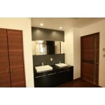 洗面本体はベッセルタイプのダブルボール+弊社オリジナル造り付家具にてデザイン性の高い魅せる空間をご提案しました。