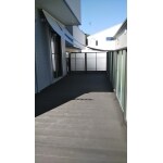 お庭のお手入れを簡単にするため、土からコンクリートへ。 ウッドデッキは樹脂製のもので、メンテナンスを簡単に。 ウッドデッキの下は防草シート敷き。 紫外線対策としてリビングの窓にシェードを設置。