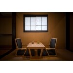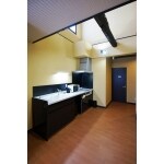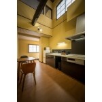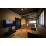 趣のあるところはしっかり残し、キッチン等の設備は新しいものを取り入れました。竿縁天井にダウンライトを埋め込みモダンな雰囲気になっています。露天風呂は10㎡以内で増築し新たに造りました。一棟温泉宿としては雰囲気のある客室としました。