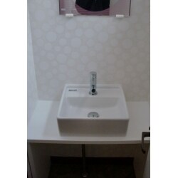 店舗トイレの洗面を入れ替え、内装の雰囲気も変えたい。とのご要望でした。